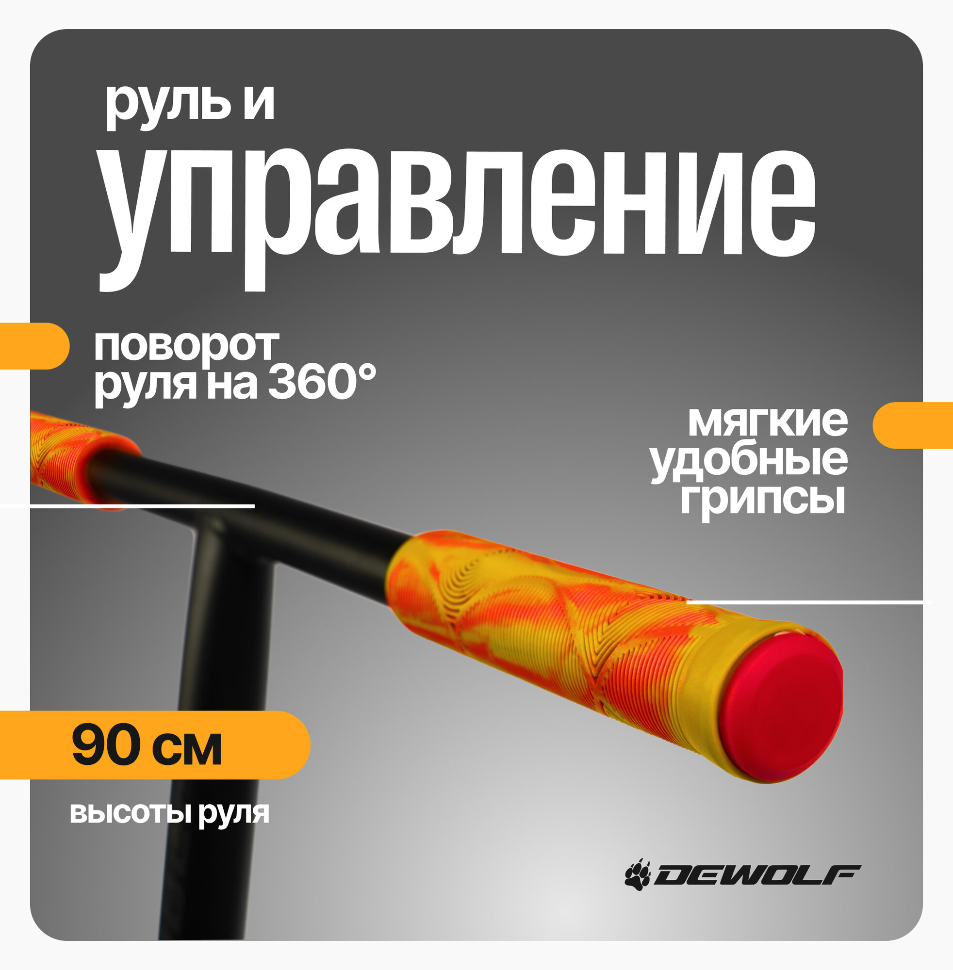 Самокат трюковой двухколесный городской DEWOLF DESPOT 120, для детей, подростков и взрослых, вращение руля 360, усиленный руль и дека, цвет оранжевый
