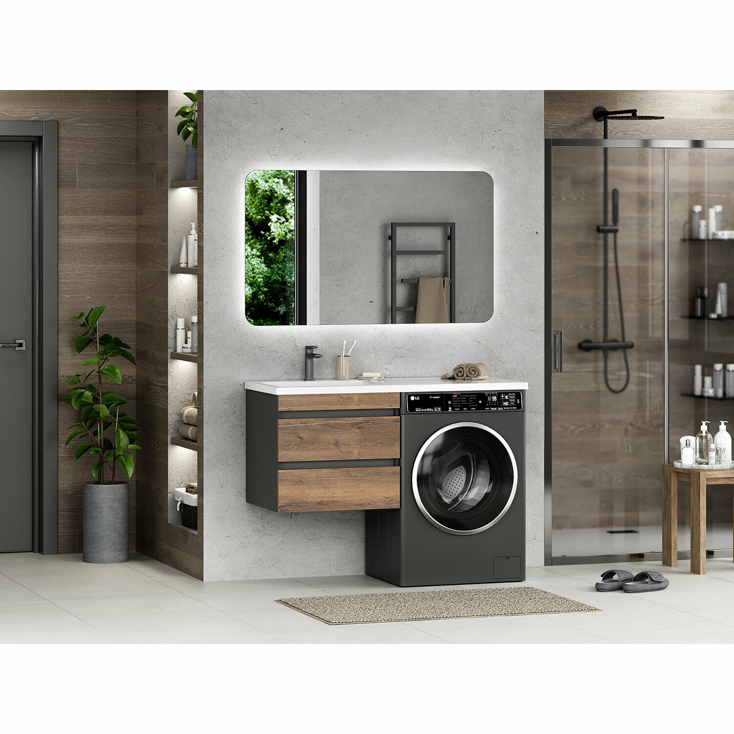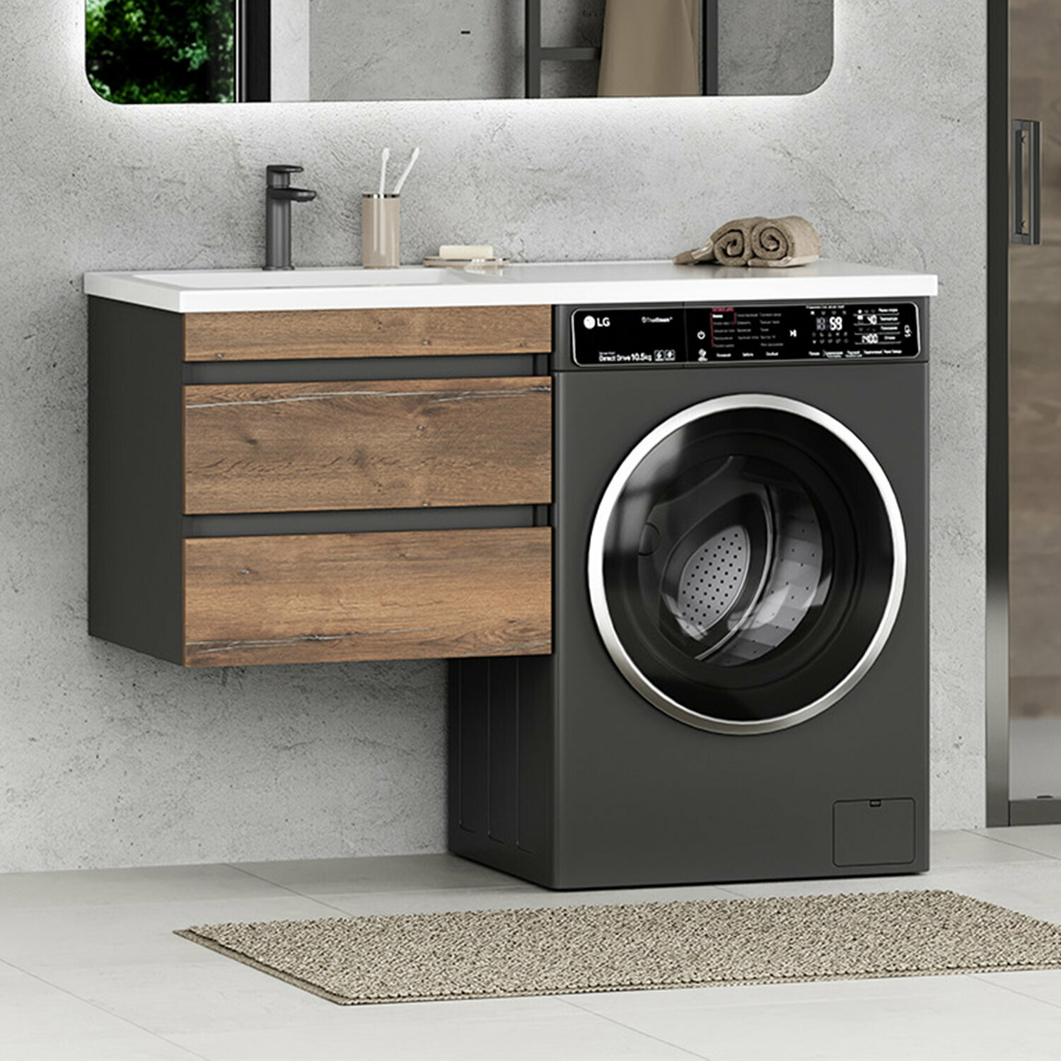 Фостер - 55 Тумба подвесная с 2 ящ. под стиральную машину, белая / раковина правая
