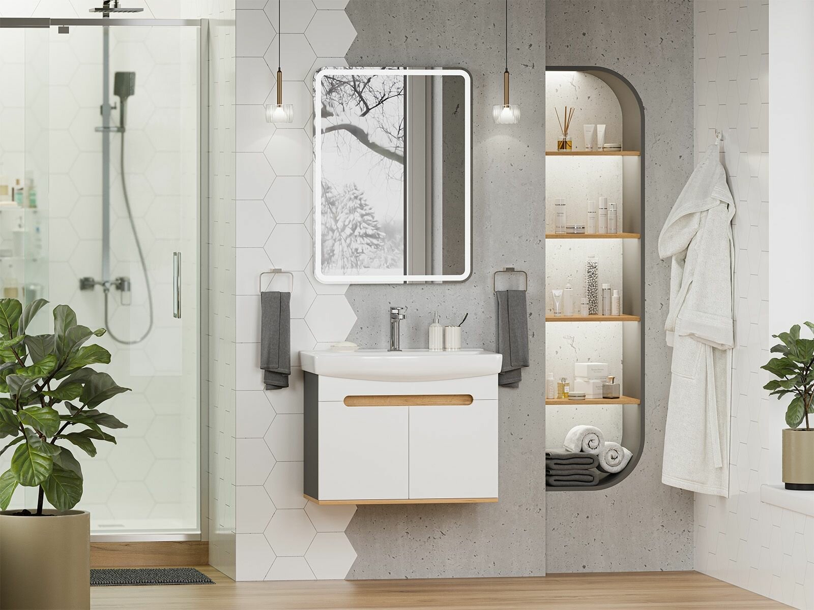 СохранитьТумба с раковиной Misty Сканди 70 подвесная белая/дуб крафт золотой/антрацит интересное: