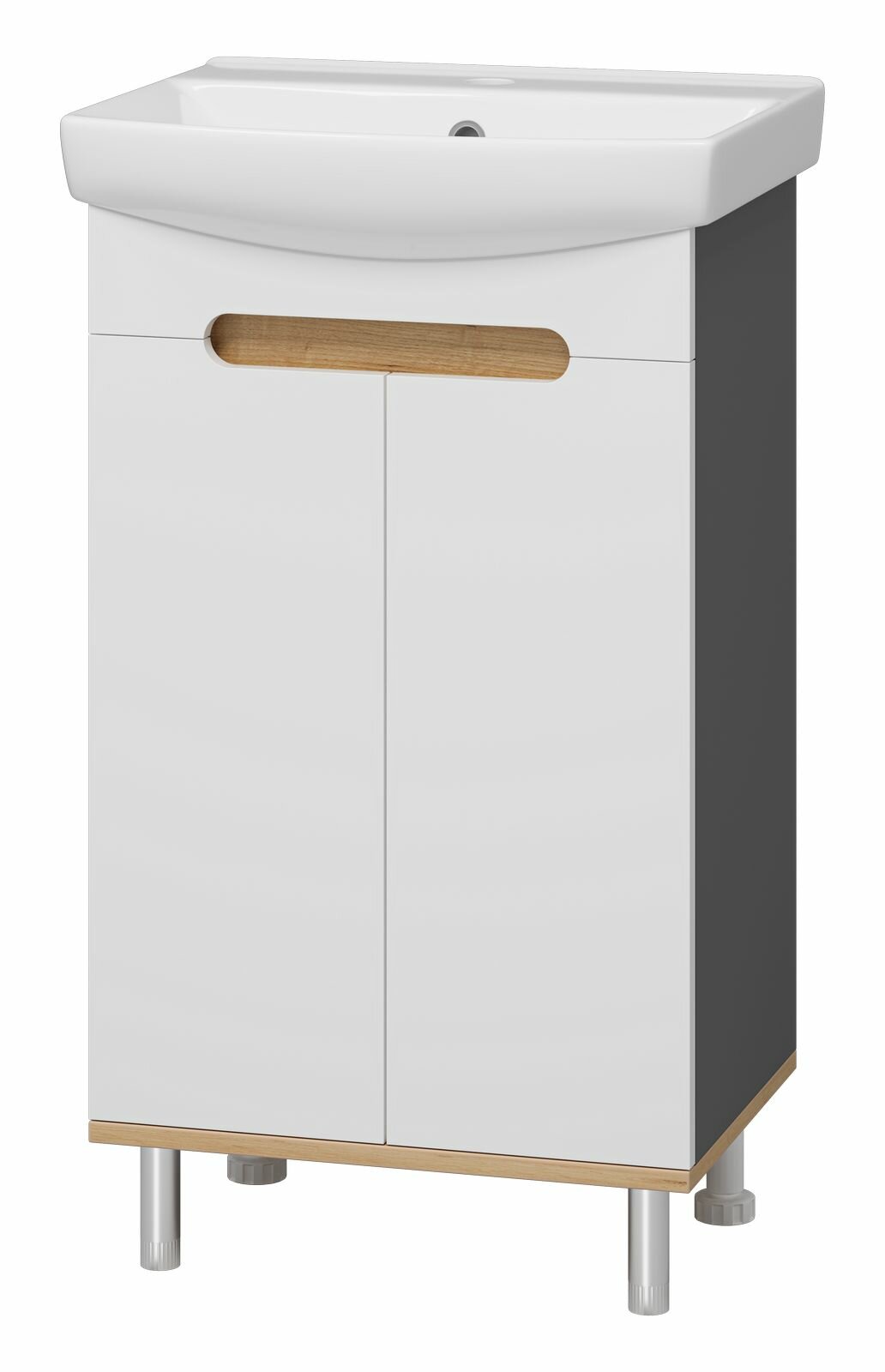 Купить Тумба с раковиной Misty Сканди - 50 напольная с 2 дверками белый/графит