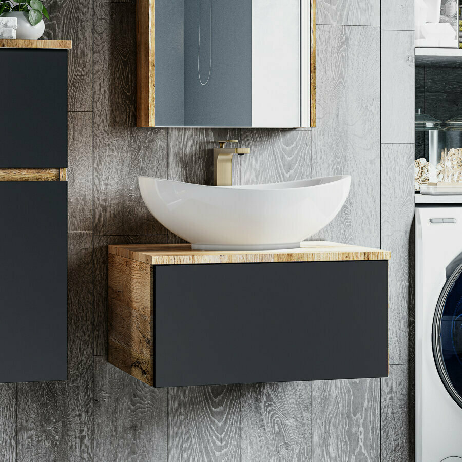 СохранитьТумба с раковиной Misty Ива - 90, графит/каштан, МДФ, подвесная, 1 ящик интересное: