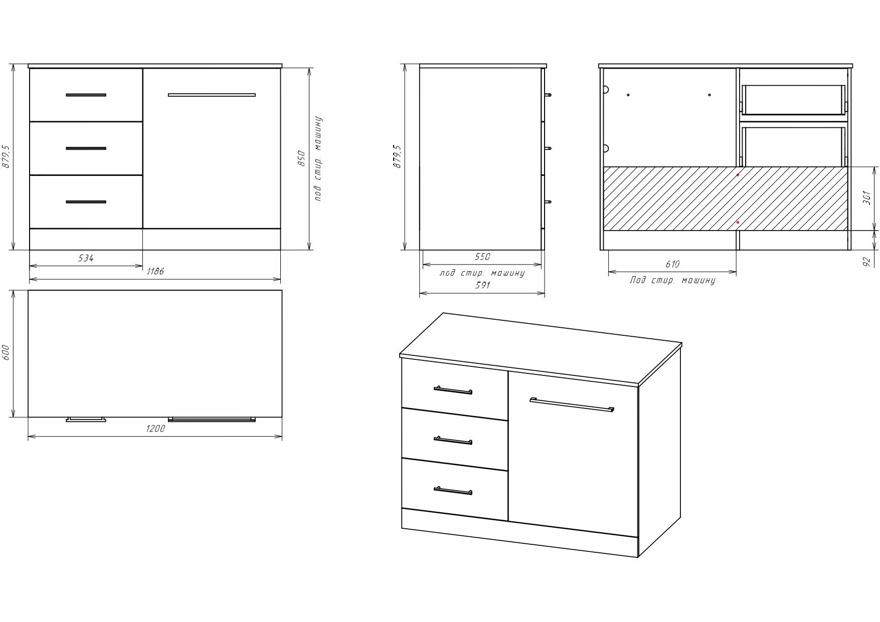 | Назначение | тумба под раковину / под стиральную машину |