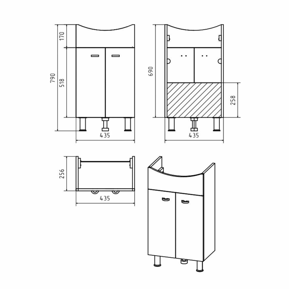 | Комплектация | тумба под раковину - 1 шт., комплект доводчиков - 1 шт., комплект креплений - 1 шт., инструкция - 1 шт; раковина в комплект не входит |
