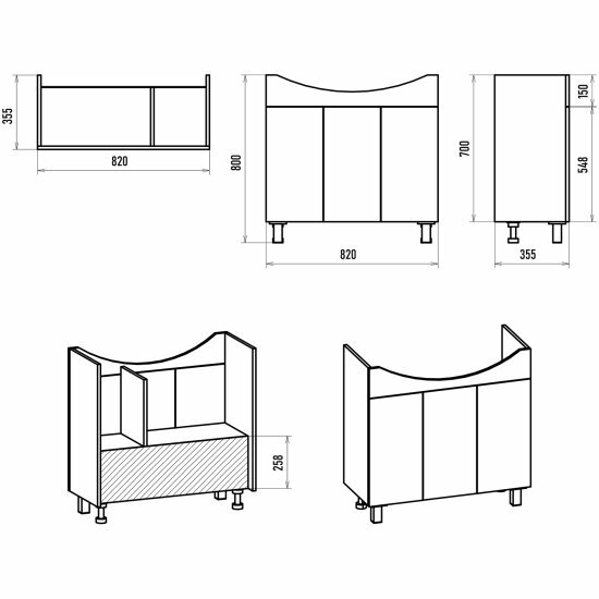 | Комплектация | тумба под раковину - 1 шт., комплект доводчиков - 1 шт., комплект креплений - 1 шт., инструкция - 1 шт; раковина в комплект не входит |