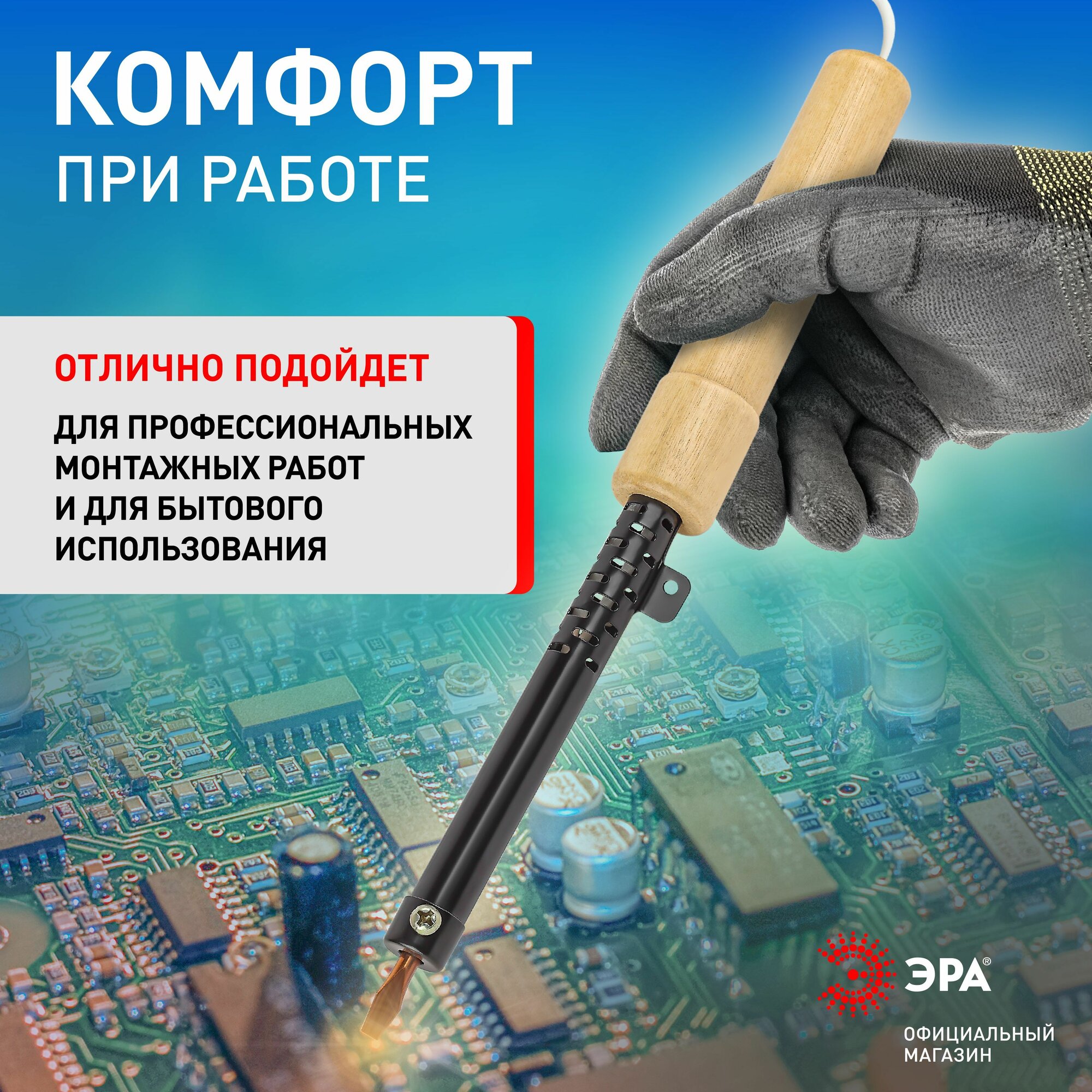PL-R01-100W ЭРА Паяльник с деревянной рукояткой ЭПСН 230 В 100 Вт ЭРА (100/2400)
