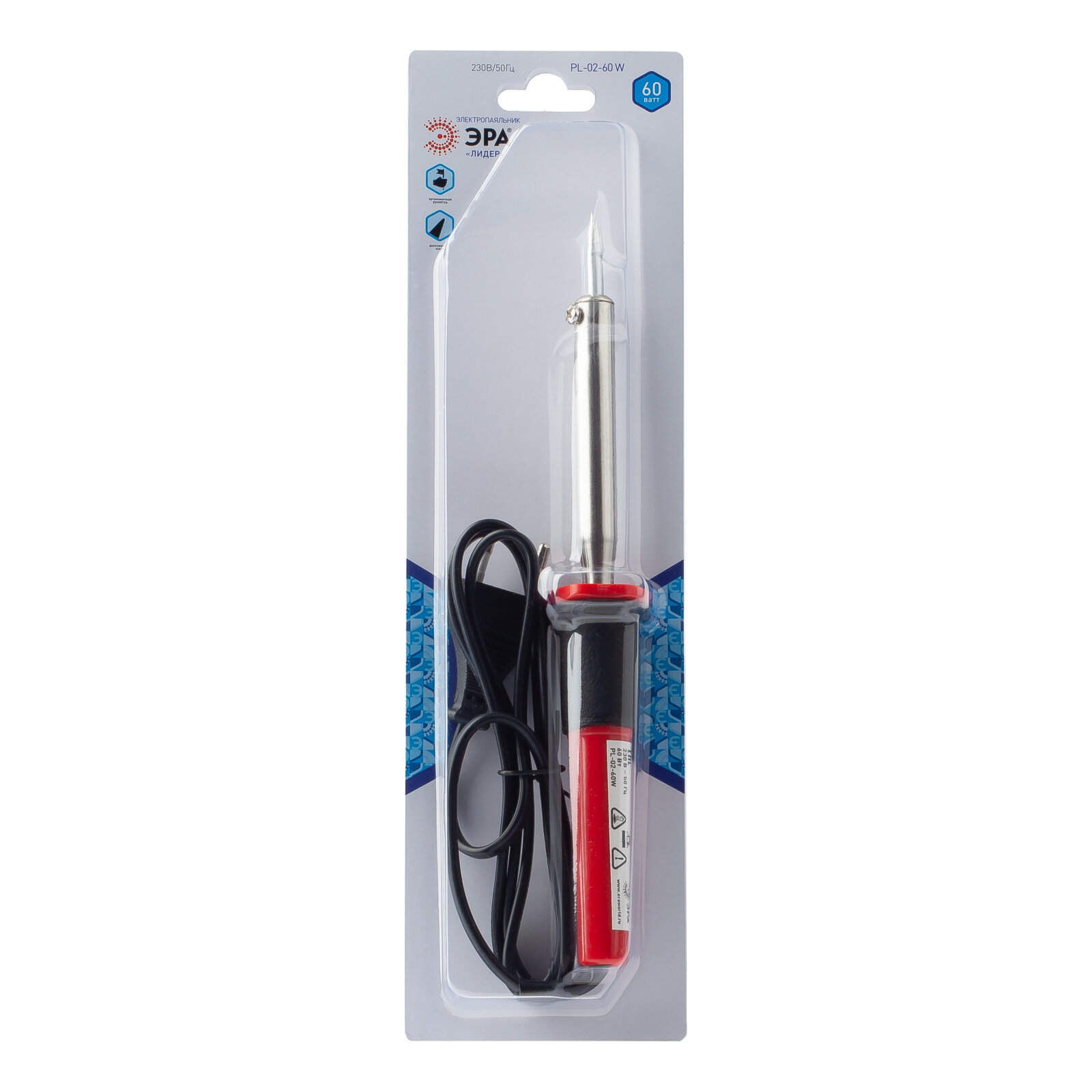 Паяльник электрический ЭРА PL-02-60W Лидер с 2-компонентной рукояткой, жало Long life, 60Вт 230В, нагрев за 480с, Б0046948 / электроинструмент