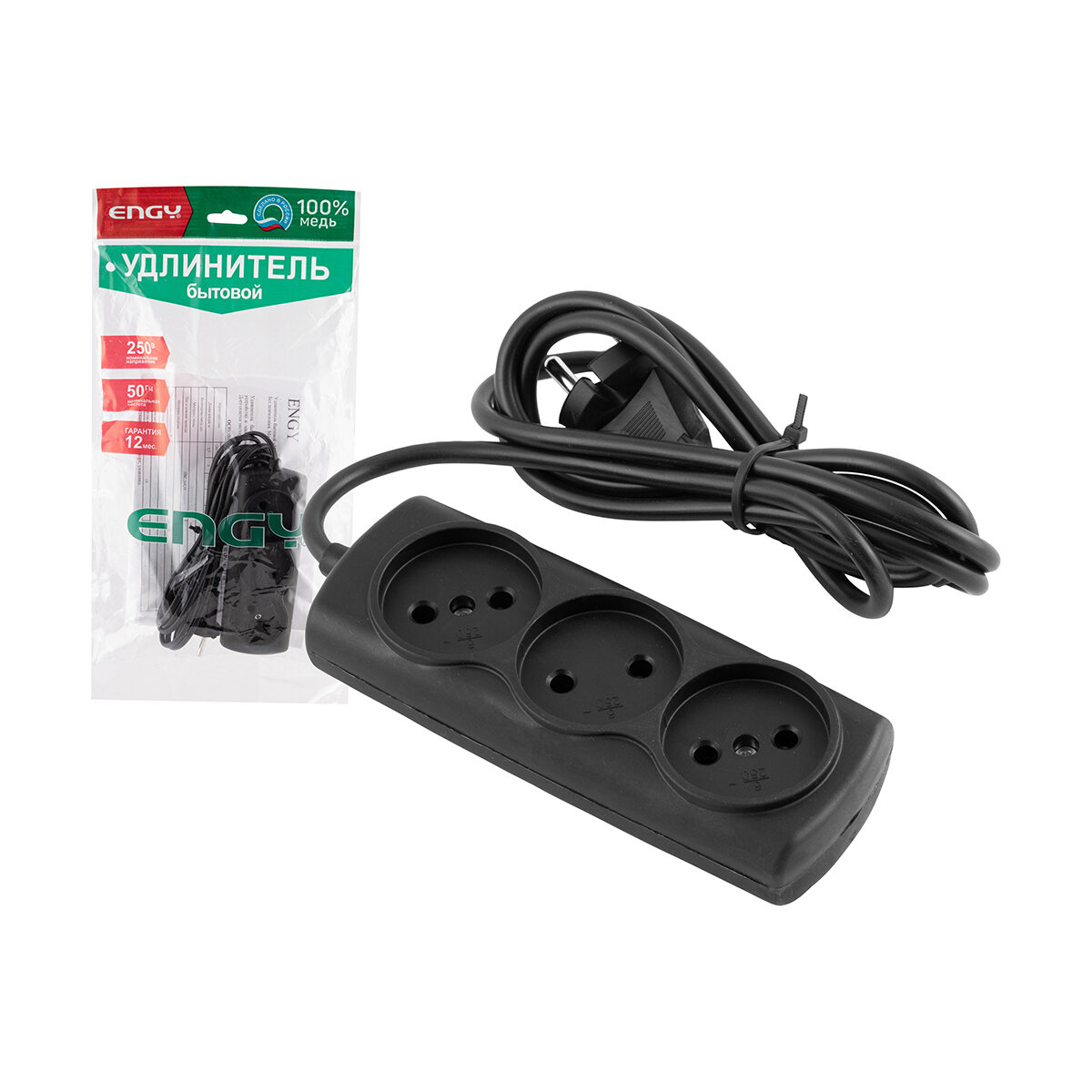 Купить Удлинитель "Engy премиум" 1,7 м, 3 розетки (пвс 2 х 0,75), черный