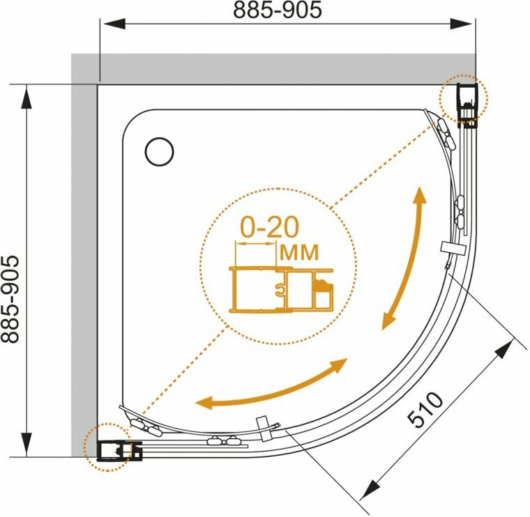 MOMENTO-R-2-90-C-Cr Душевой уголок