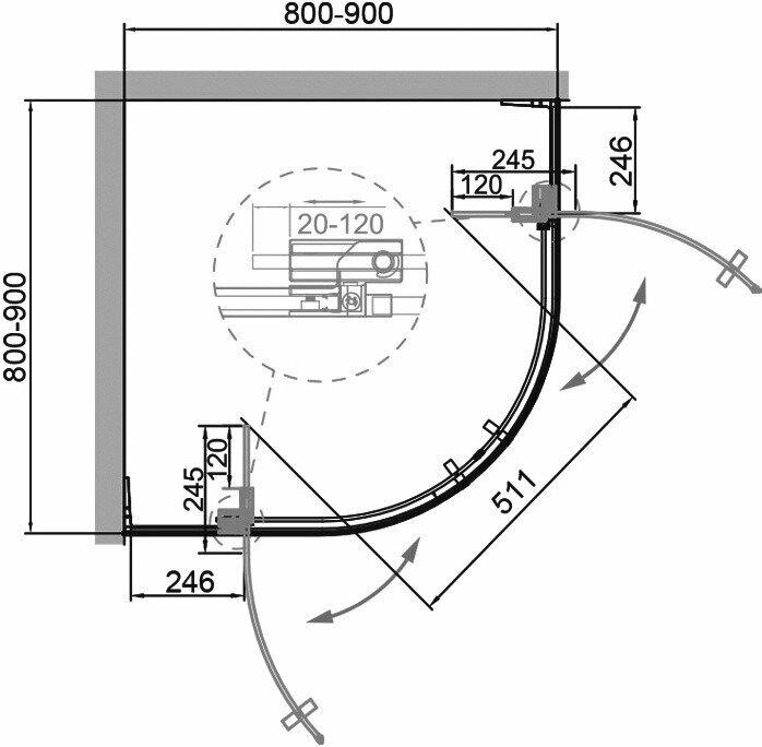 Душевой уголок CEZARES SLIDER-A-2-80/90-GRIGIO-Cr