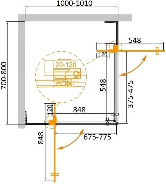 Душевой уголок CEZARES SLIDER-AH-2-90/100-100/110-BR-Cr