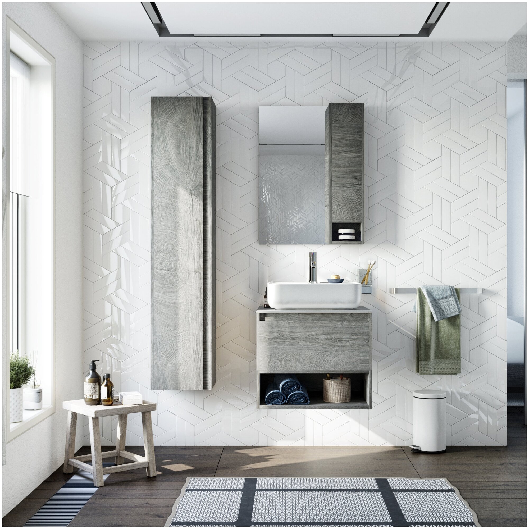 Тумба с раковиной STWORKI Карлстад 60, дуб рошелье, с белой полкой