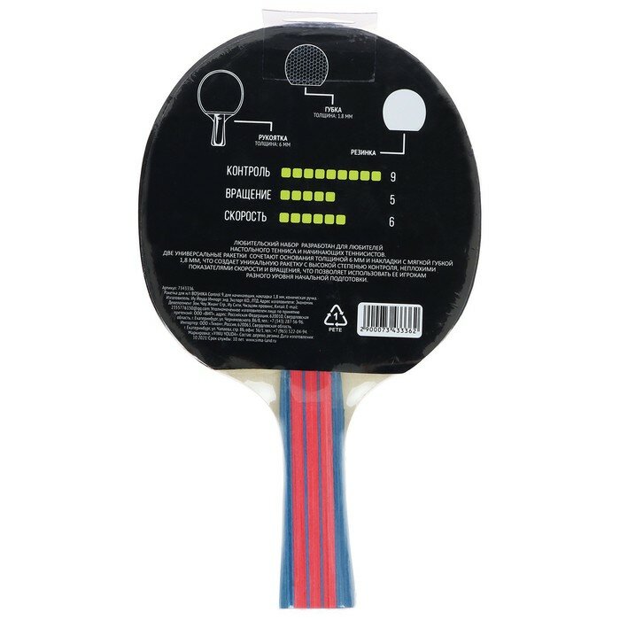 Купить Ракетка для настольного тенниса ТероПром 7343336 BOSHIKA Control 9, для начинающих, накладка 1,8 мм, коническая ручка, 7343336