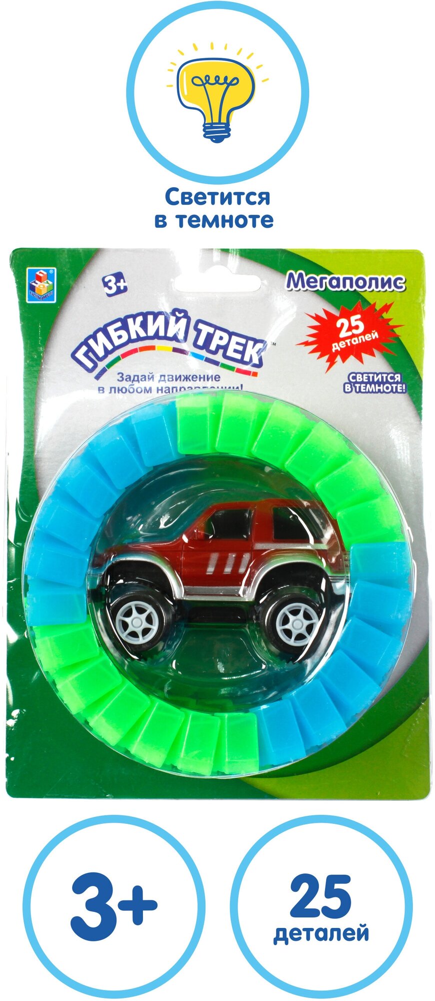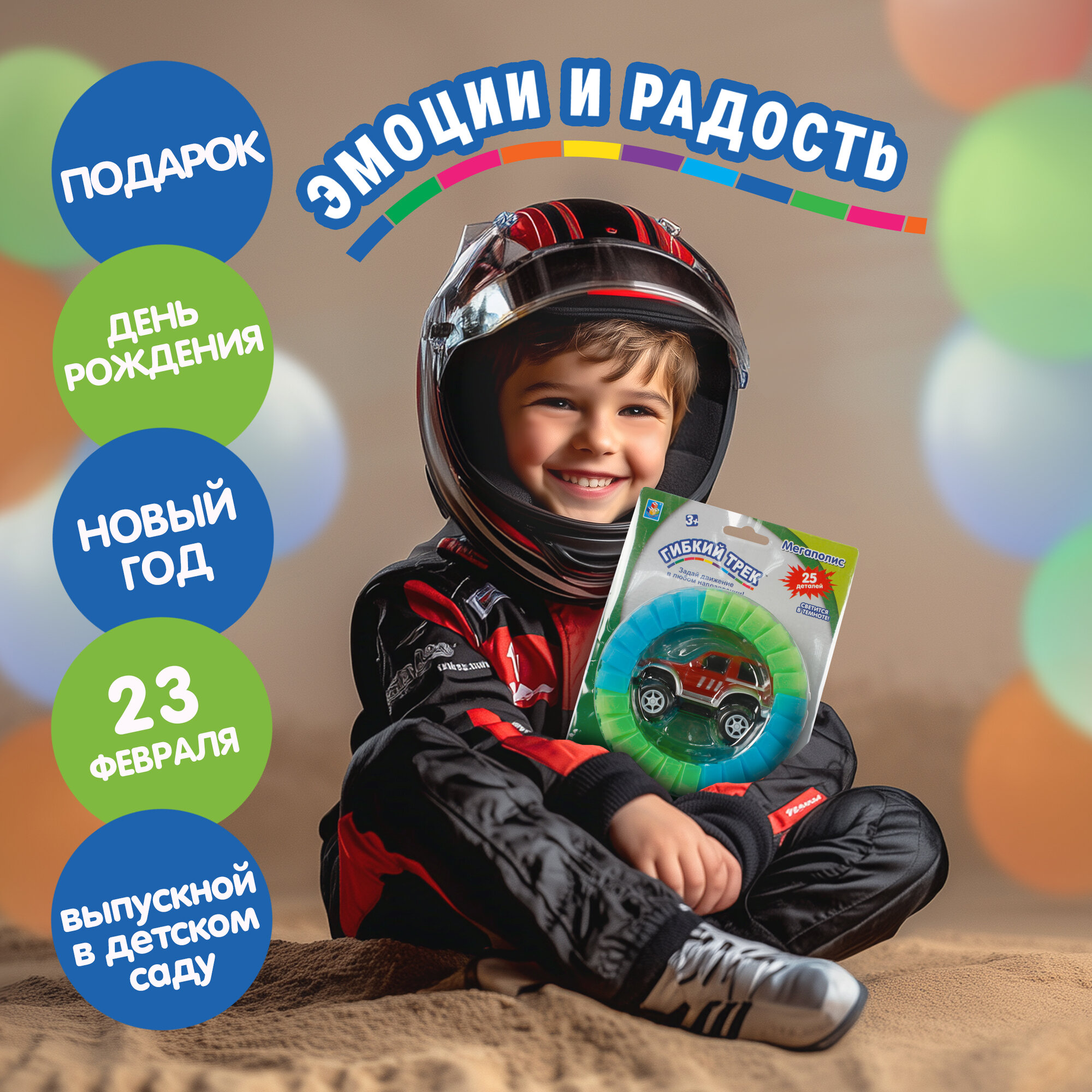 Купить Гибкий трек с машинкой 1TOY, гоночная трасса, дорога, автотрек, 25 деталей, подарок на новый год ребенку