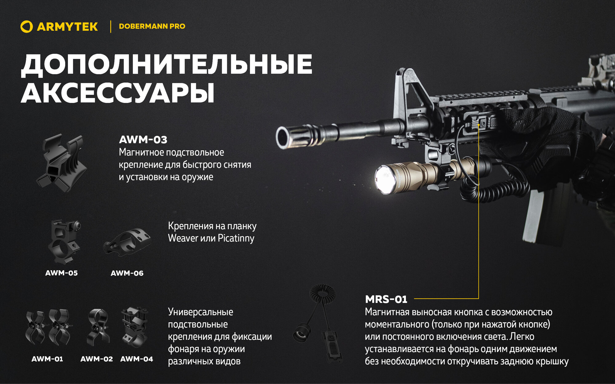 Расширенная комплектация тактического фонаря Armytek Dobermann Extended Set ( белый свет)