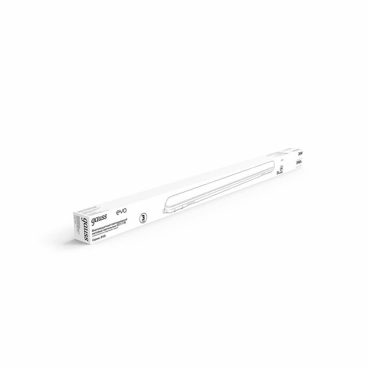 Светильник светодиодный Gauss ССП-176 EVO IP65 1200х76х66 36W 3960lm 6500K матовый 864425336 интересное: