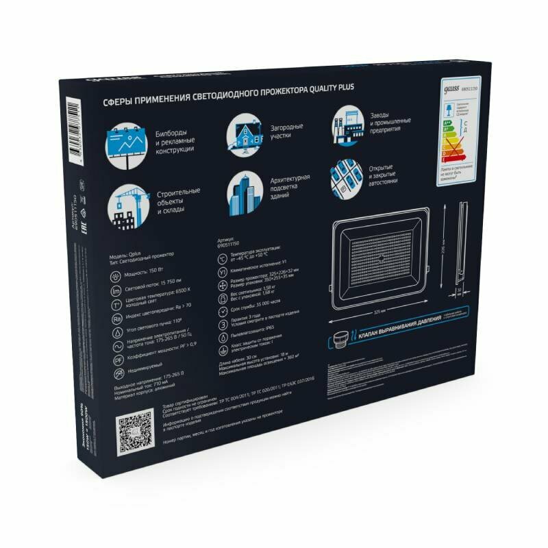 СохранитьПрожектор светодиодный Gauss Qplus 150Вт, 15750лм, 6500К, IP65, графитовый интересное: