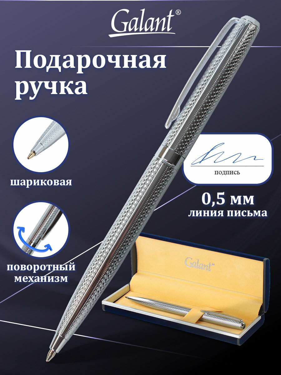 Ручка подарочная шариковая GALANT "Freiburg", корпус серебристый с гравировкой, хромированные детали, пишущий узел 0.7 мм, синяя, 141016