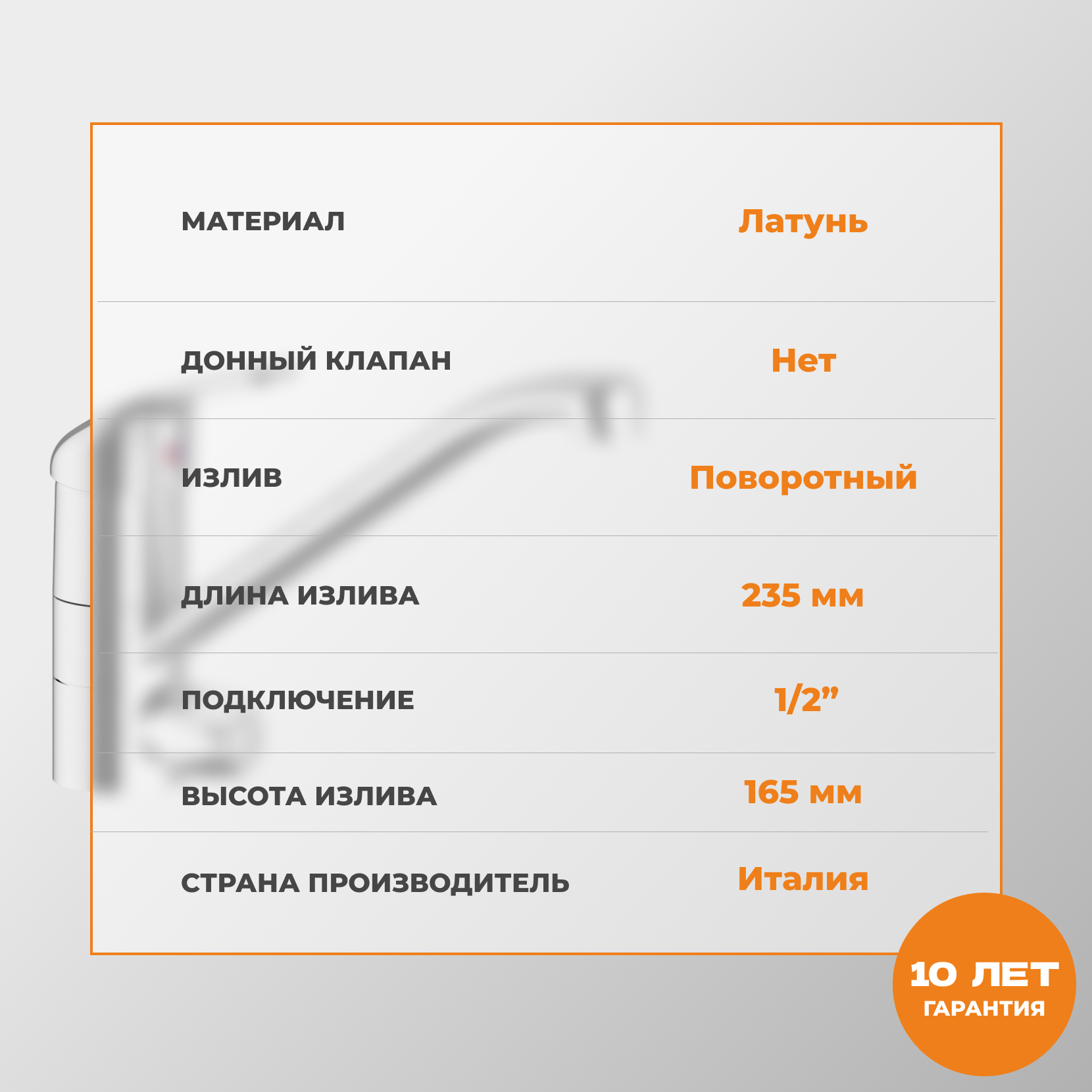 Смеситель Zipponi AA610CR-002, для кухни, поворотный излив, латунь интересное: