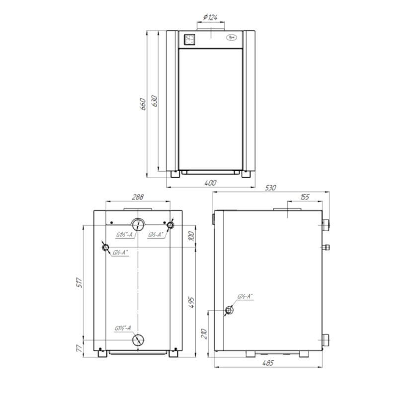 | Диаметр дымохода | 124 мм |