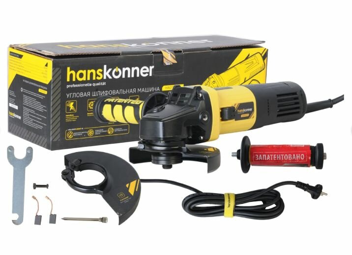 Болгарка, угловая шлифовальная машина УШМ Hanskonner HAG12125 сетевая (125мм, 1200Вт, 8500об/мин, быстросъёмный кожух, 4м резиновый кабель)
