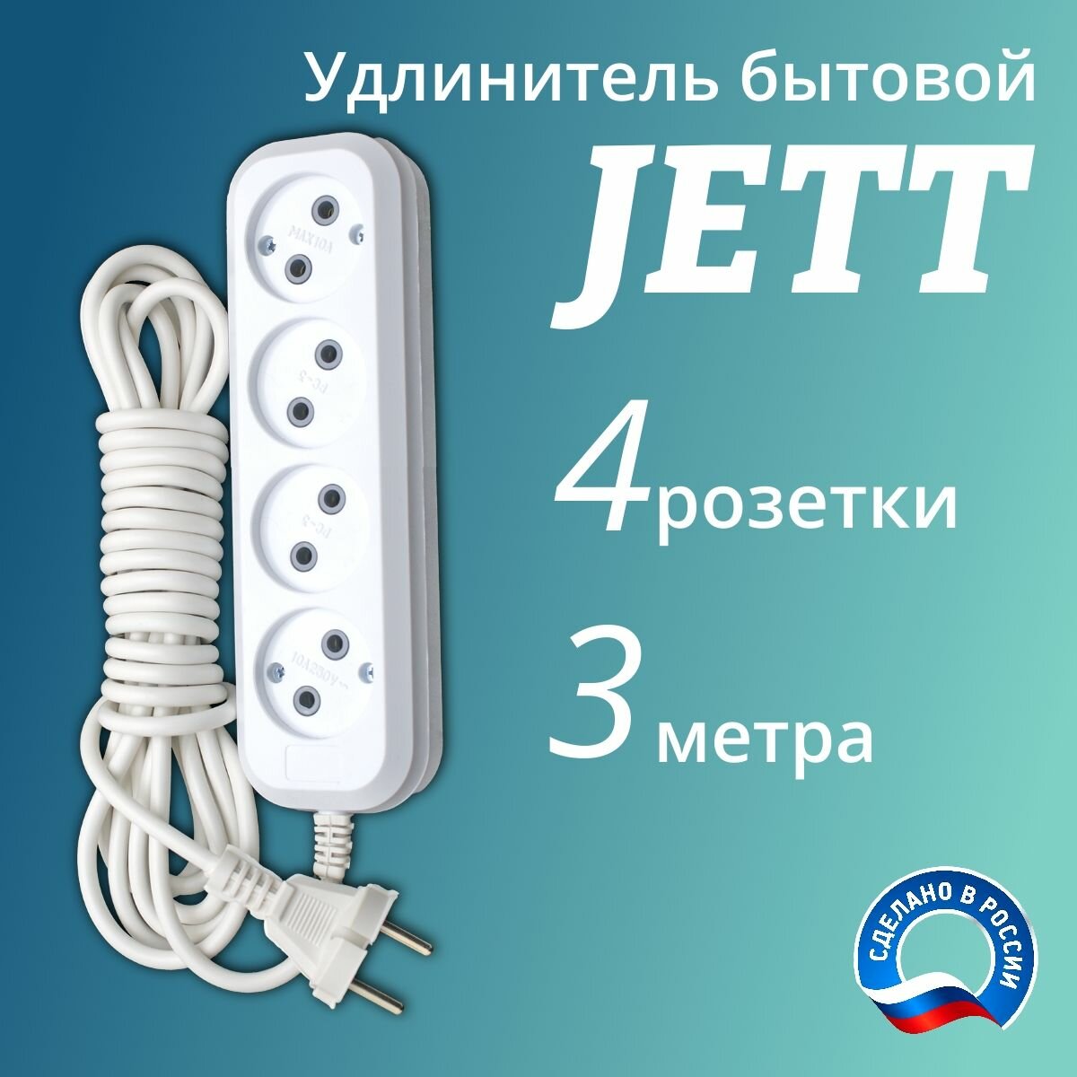 Электрический удлинитель JETT ( джетт) 4 гнезда ( ПВС ) 3 метра