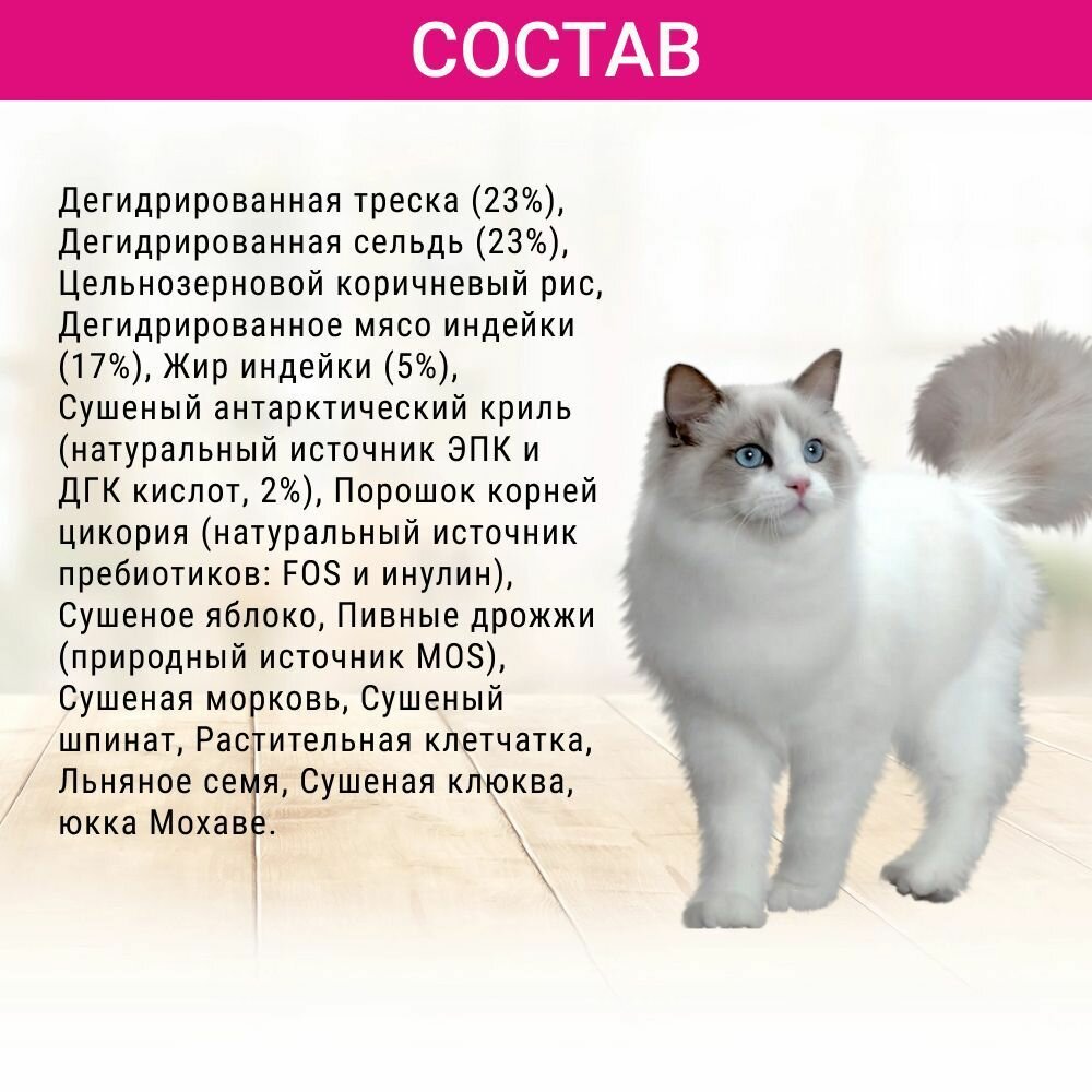 | Особые потребности | гипоаллергенный / для вывода шерсти / для живущих в помещении / для здоровья кожи и блеска шерсти |
