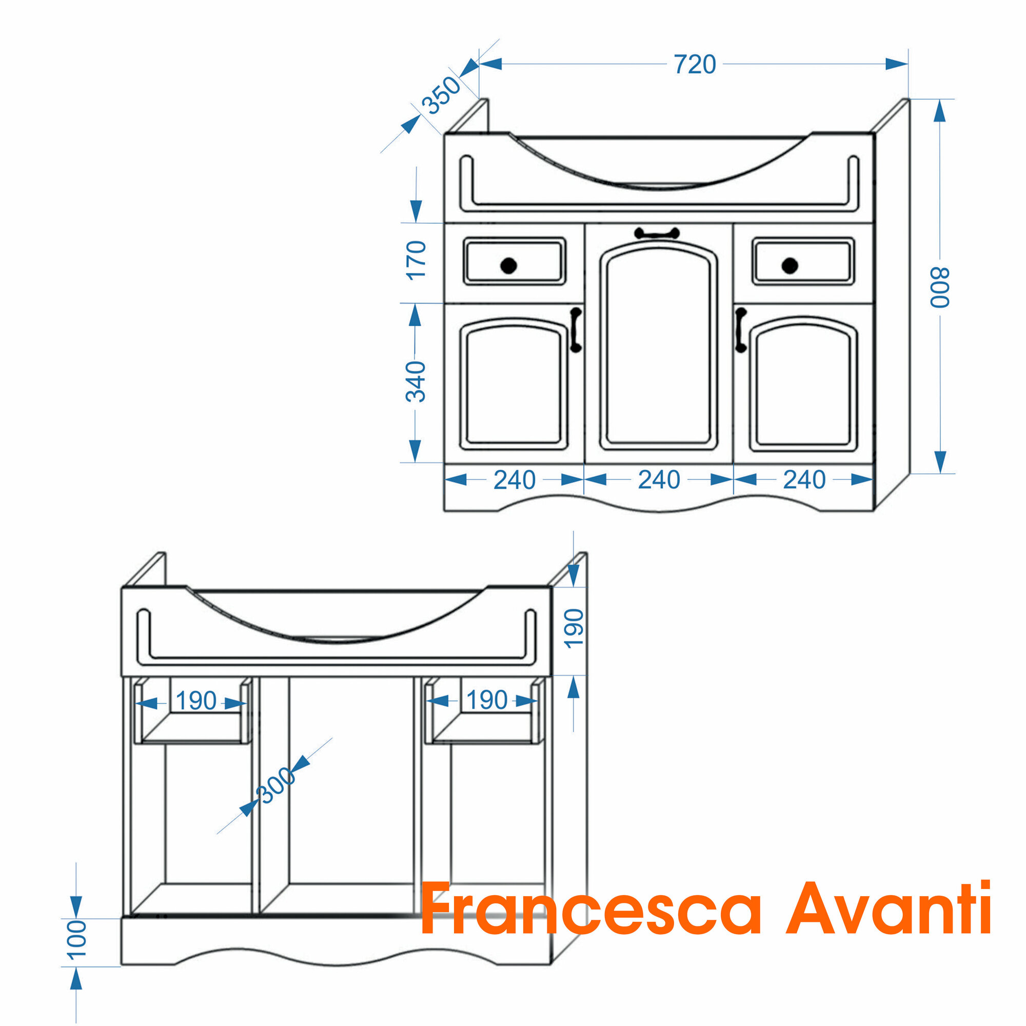 Тумба с раковиной для ванной Francesca Avanti Империя 80 белый (2ящ+3дв. ум. Классик 80)
