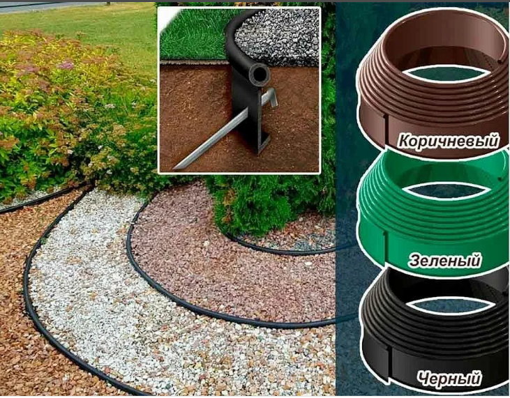 | Плюсы: | Можно делать любые изгибы клумб |