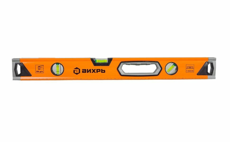 Уровень алюминиевый Вихрь Усиленный 1000 мм 3 глазка 1 зеркальный 2 комп. рукоятки 73/11/4/12