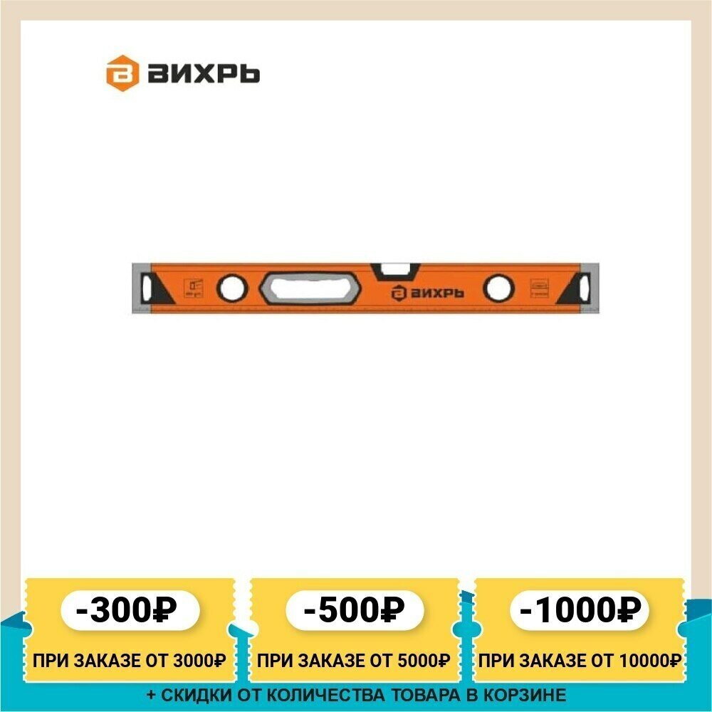 Уровень алюминиевый Вихрь Усиленный, 600 мм, 3 глазка (73/11/4/10)