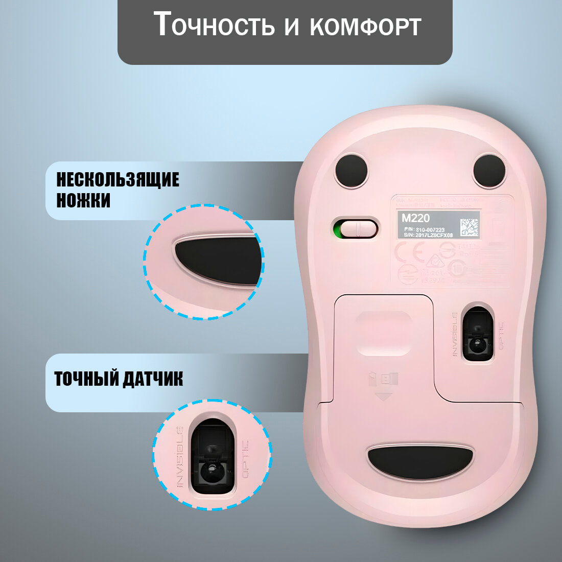 СохранитьБеспроводная мышь Logitech M221 Silent, бесшумное нажатие, розовый, 1000 dpi интересное: