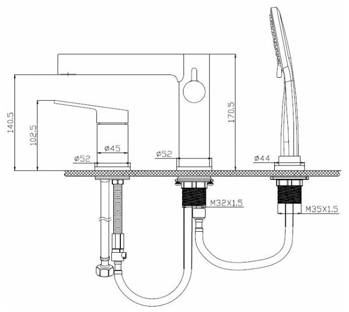 Смеситель на борт ванны BELBAGNO DELTA DEL-BVD3-IN