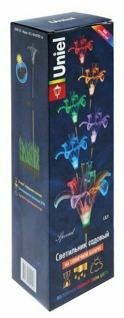 Садовый светильник Uniel на солнечной батарее Lily, 9 ? 80 ? 9 см, свечение мульти (RGB)