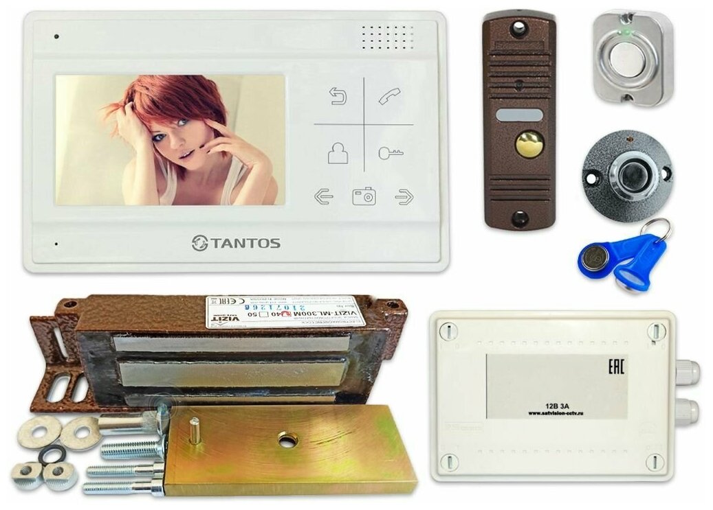 Купить Комплект видеодомофона с магнитным замком 300 кг, цветной, 4.3" с уличным блоком питания