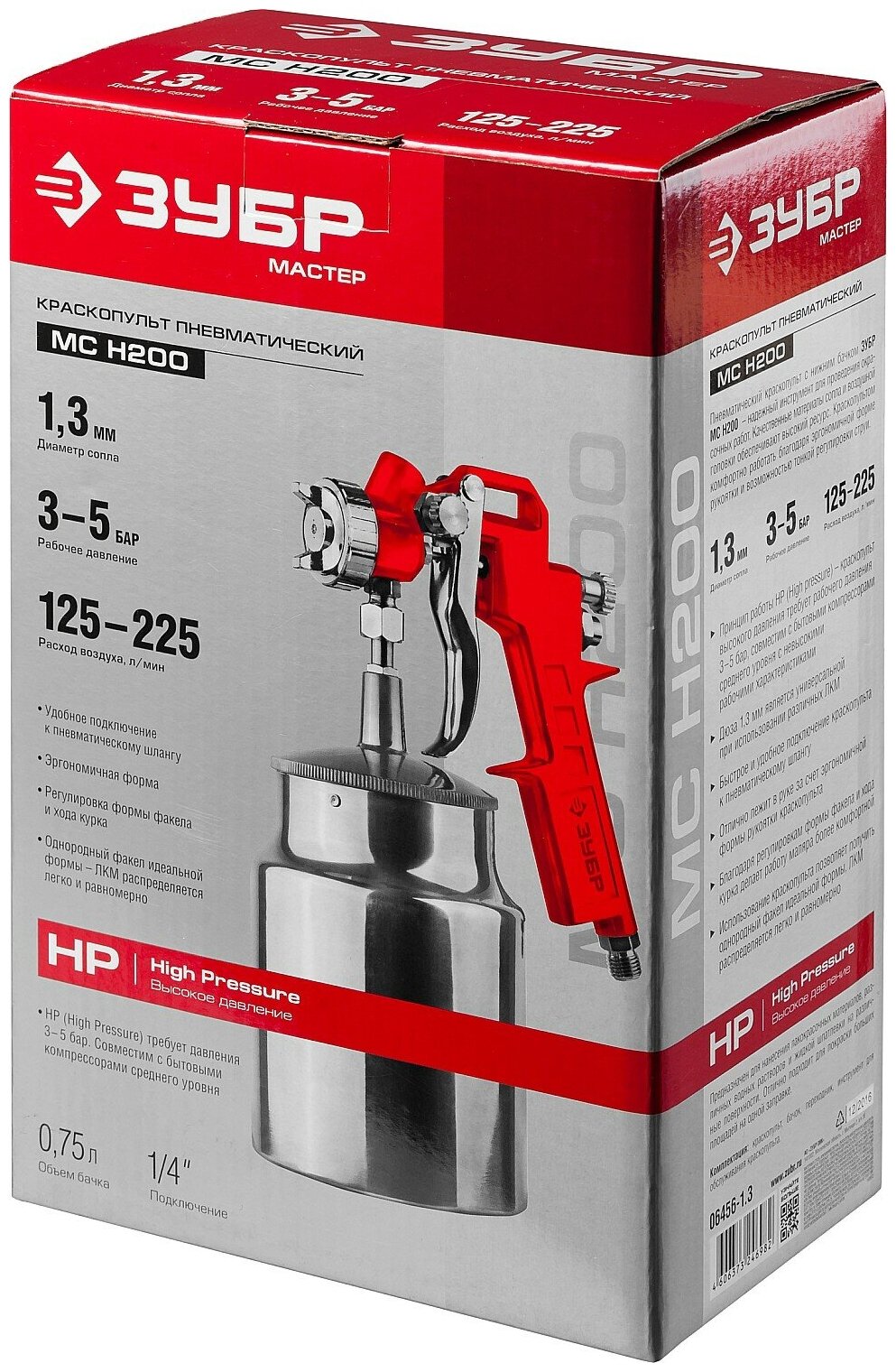 Краскопульты пневматические, серия мастер МС Н200, 1,3мм, Зубр (арт. 06456-1.3)
