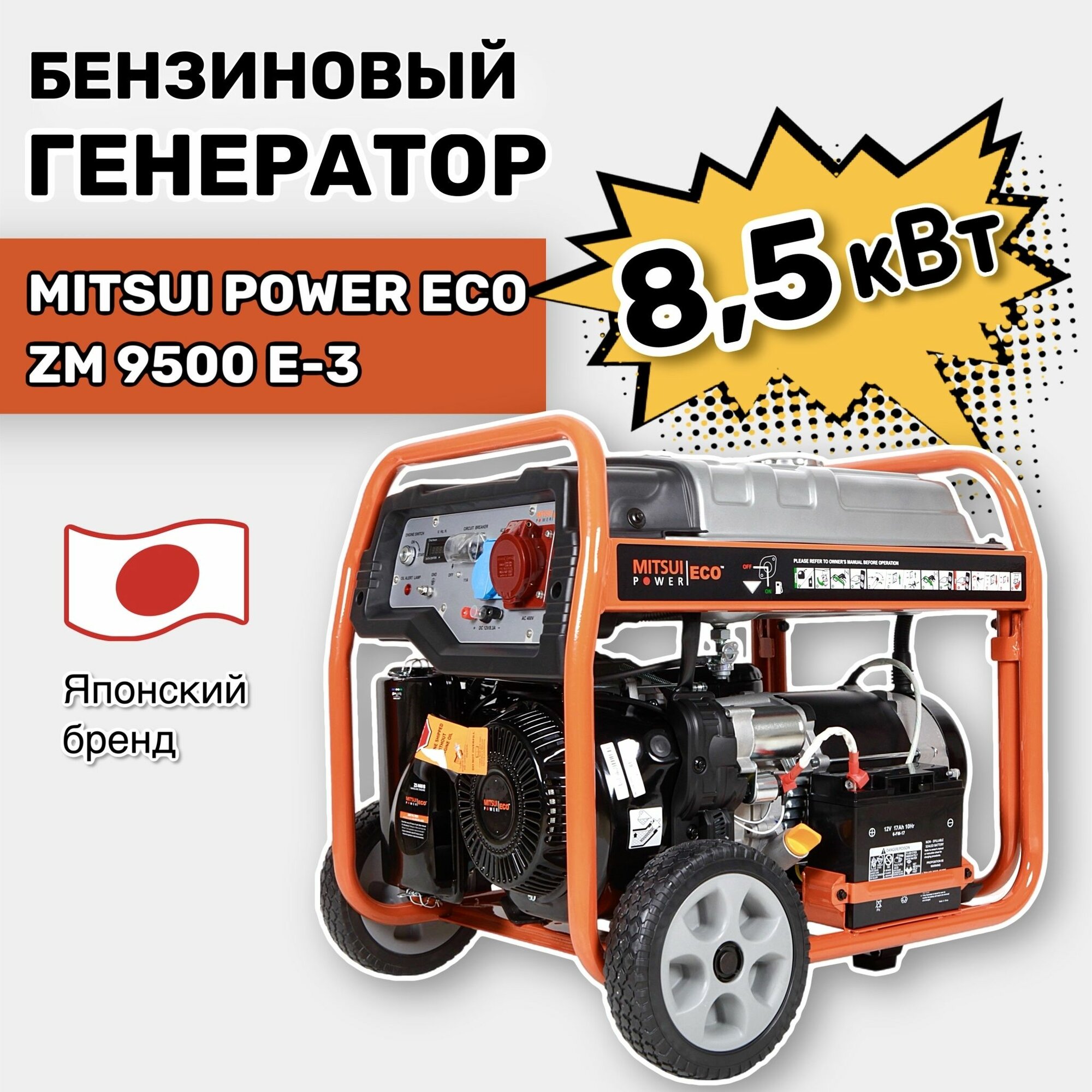 Купить Бензиновый генератор Mitsui Power Eco ZM 9500 E-3 (3 фазы, 8,5 кВт, 230/400 В, электростартер)