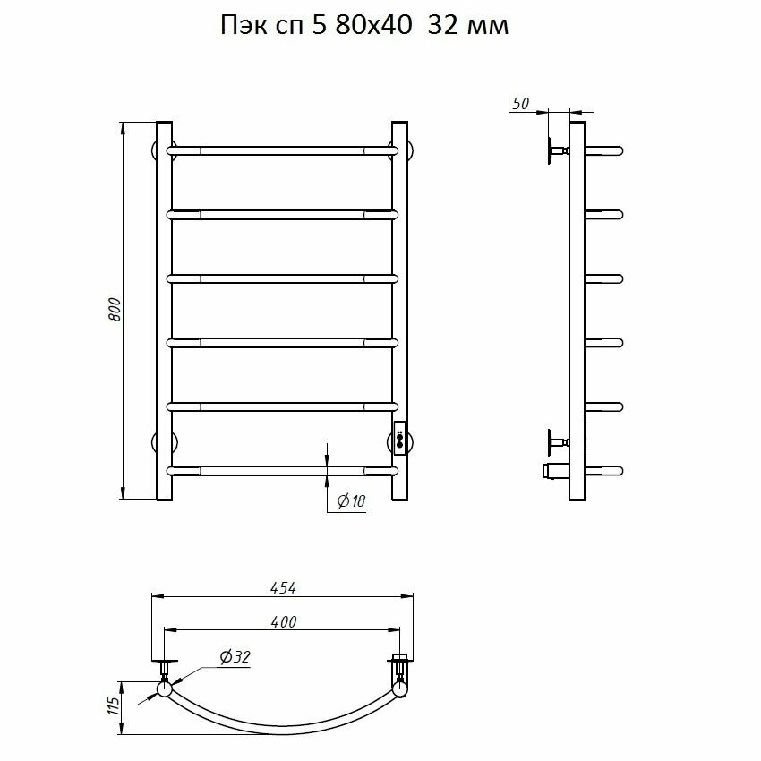 Полотенцесушитель Электрический Пэк сп 5 80х50 черный ВГП