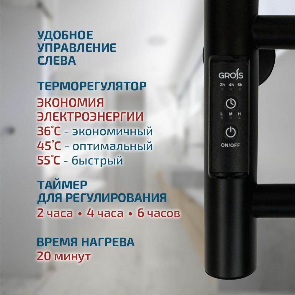 Полотенцесушитель электрический Grois Alex GR-101 500мм 600мм П6 черный матовый подключение универсальное форма Лесенка