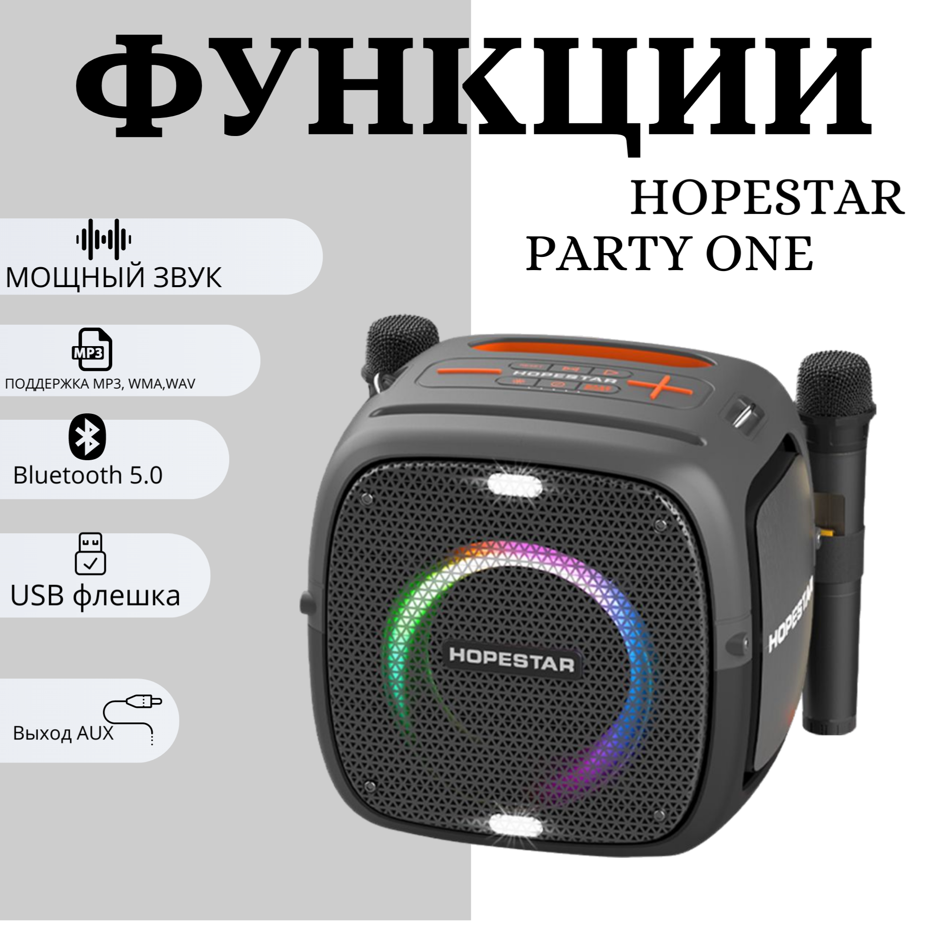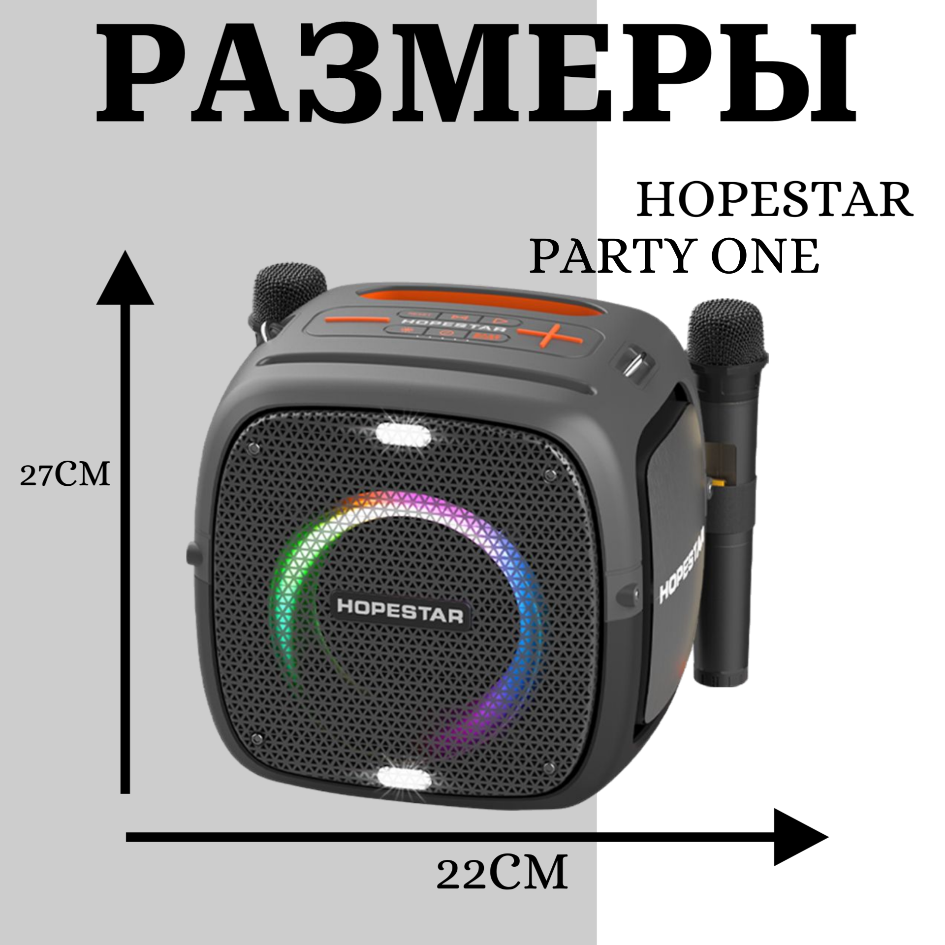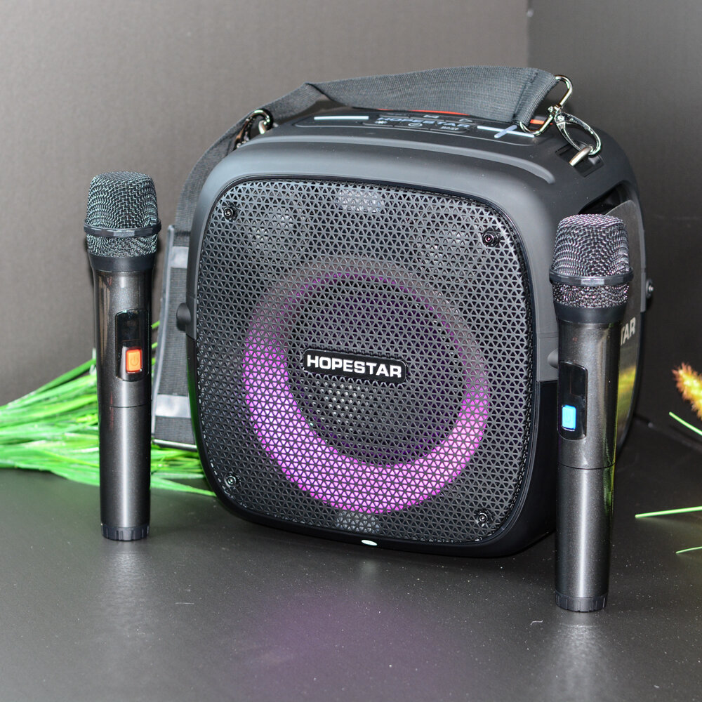 Портативная Колонка Hopestar Party One Black с двумя беспроводными микрофонами, Чёрная