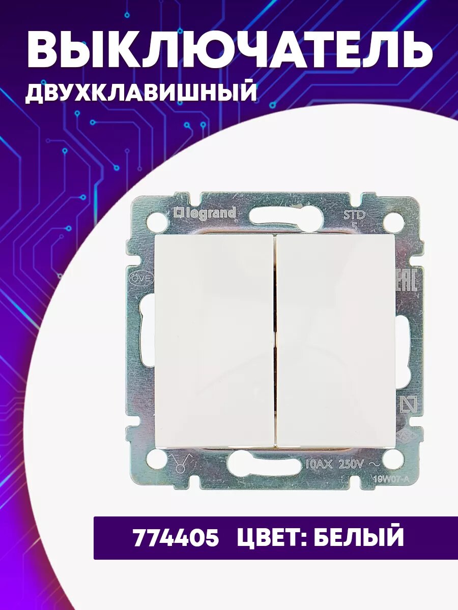 Выключатель 2х1-полюсный Legrand 774405 Valena, 10 А, белый