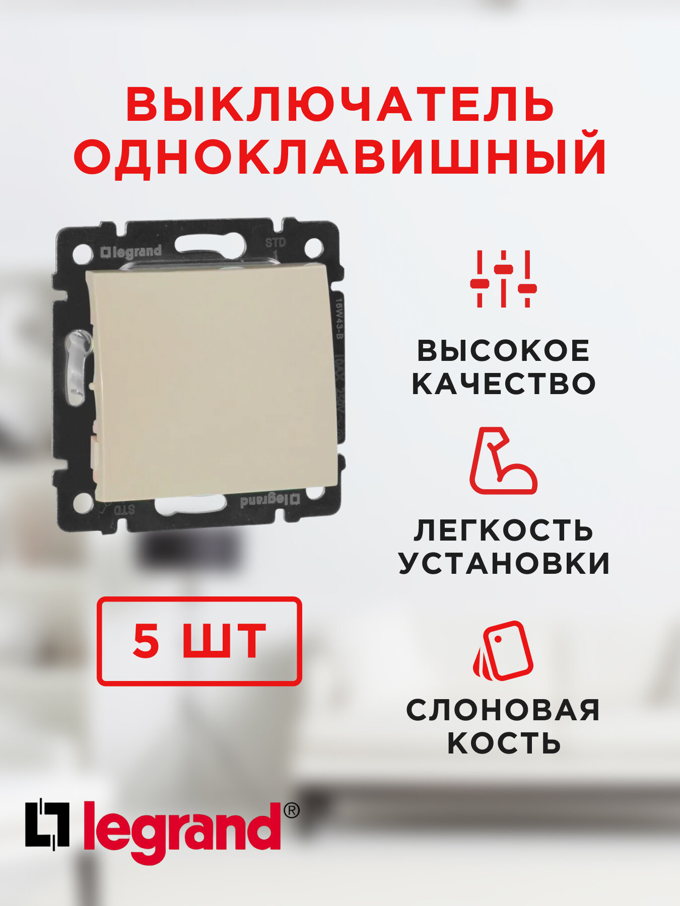 СохранитьВыключатель Legrand Valena одноклавишный, цвет слоновая кость (774301) 5 шт интересное: