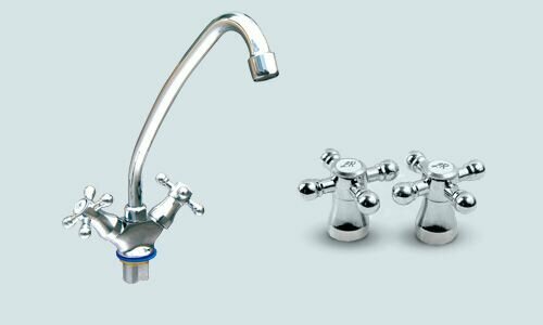 | Комплектация | корпус, узел излива в сборе, 2 вентильные головки в сборе, 2 маховика крест в сборе, гайка крепежная, прокладка |