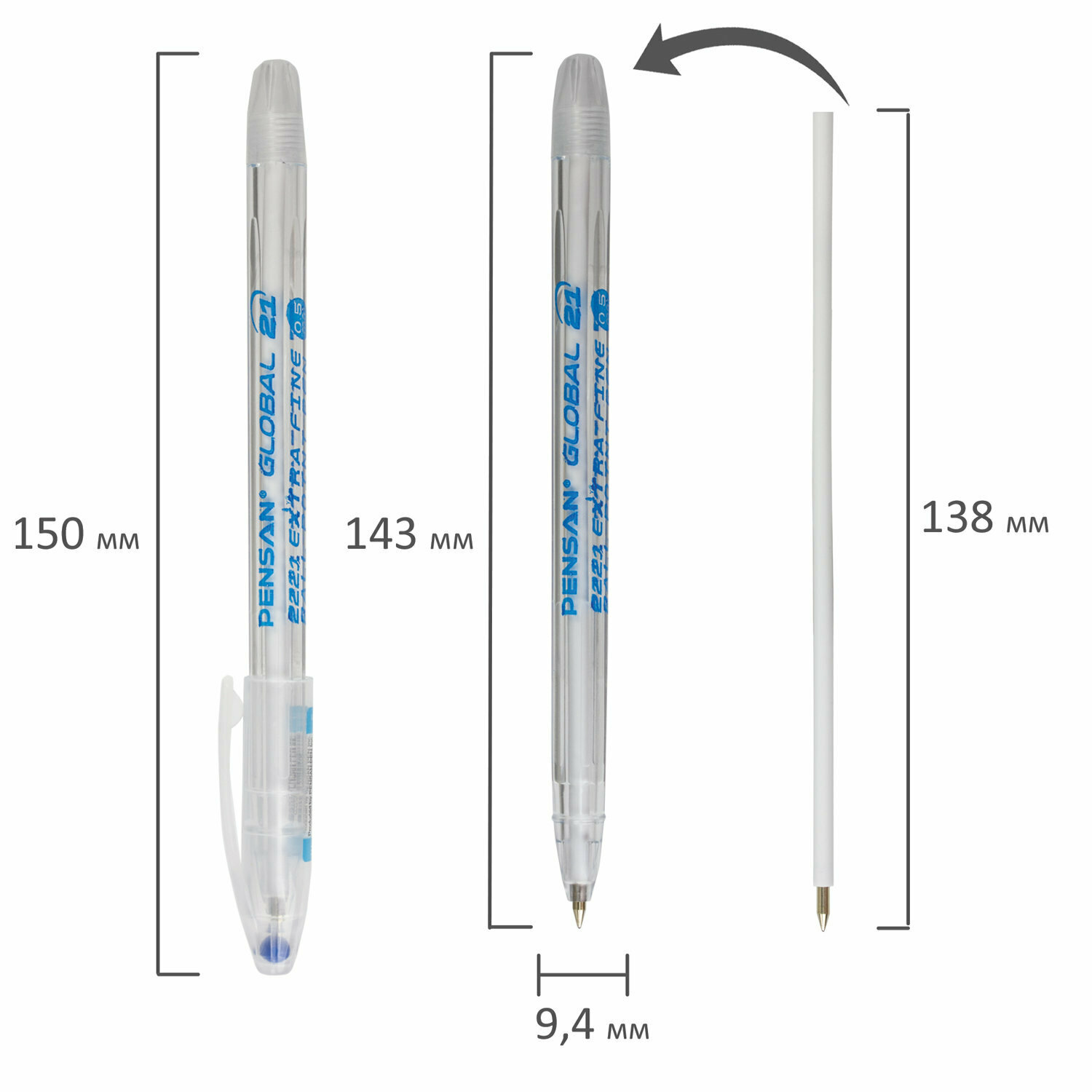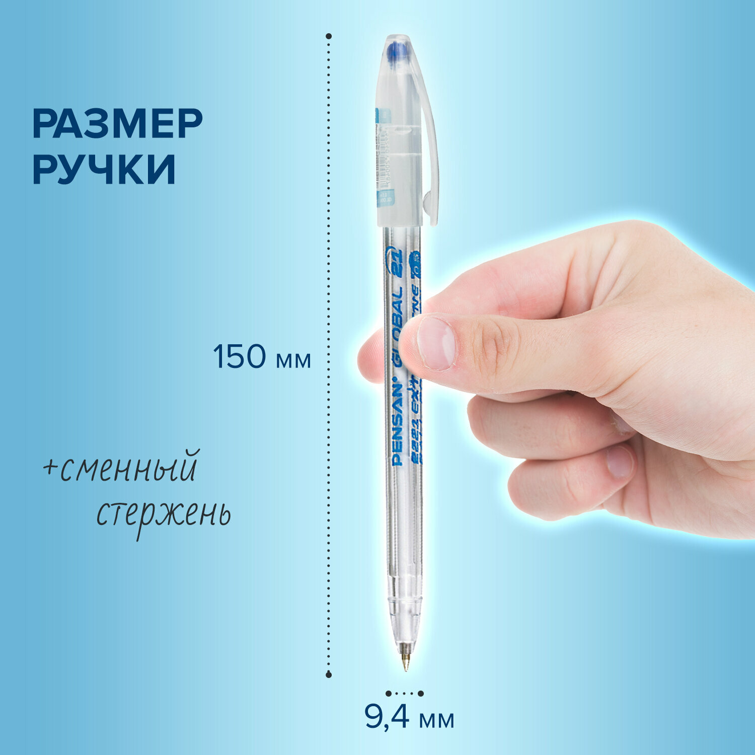 Ручка шариковая PENSAN Global-21, синяя, выгодная упаковка,комплект 12 штук, линия 0,3 мм, 880171