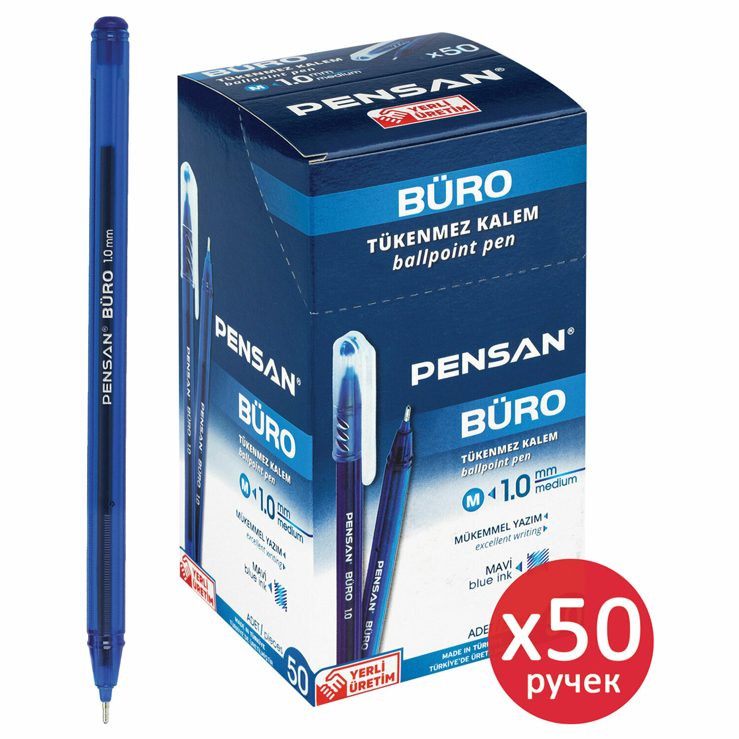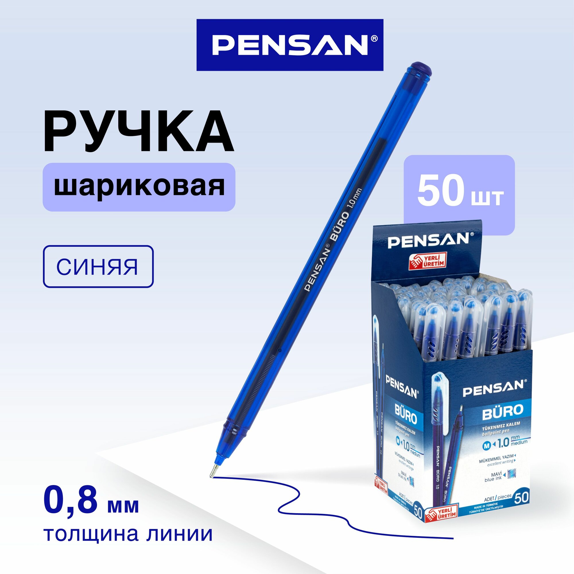 Купить Ручки шариковые синие Pensan, масляные чернила, линия письма 0,8 мм, набор 50 шт
