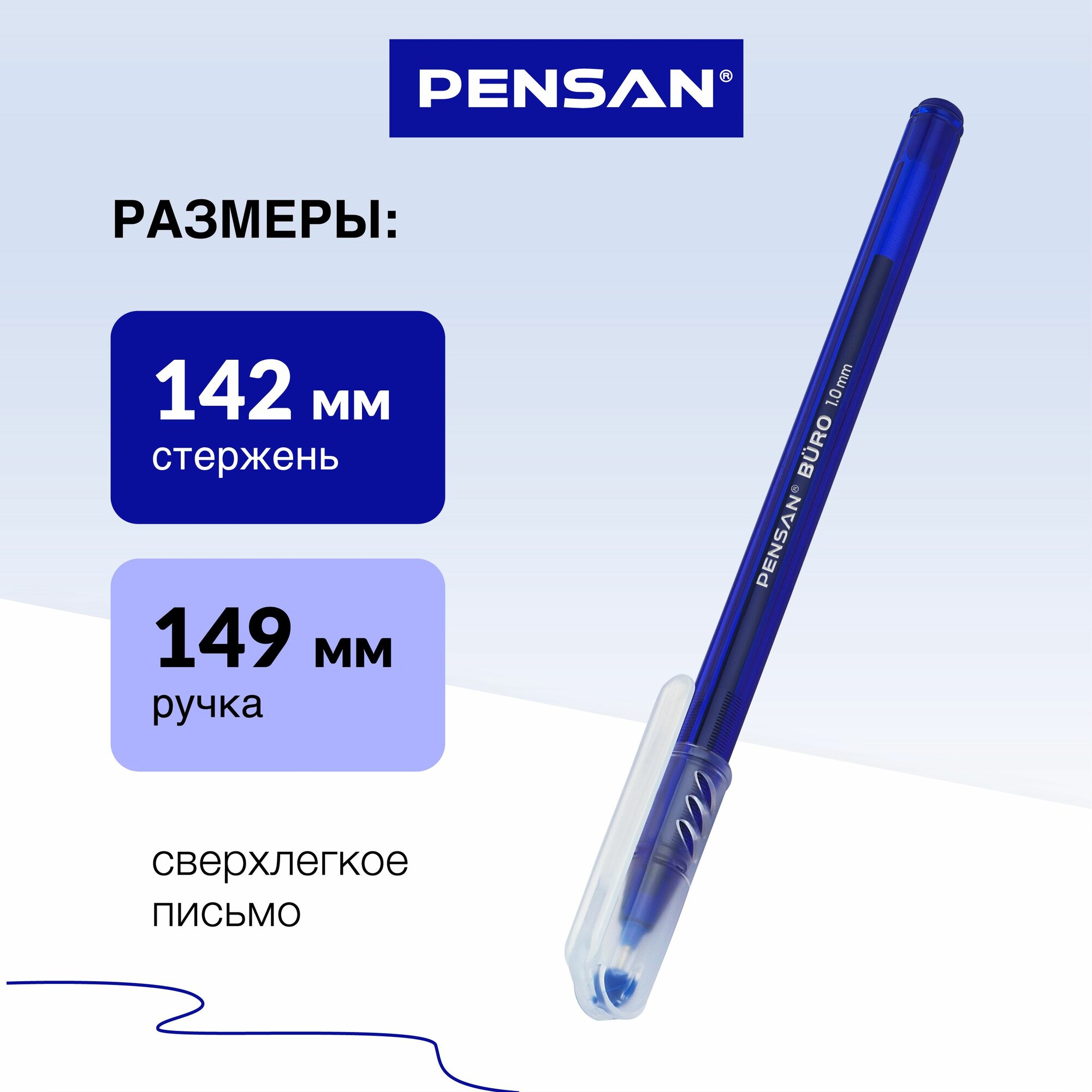 Ручки шариковые синие Pensan, масляные чернила, линия письма 1 мм, набор 12 шт