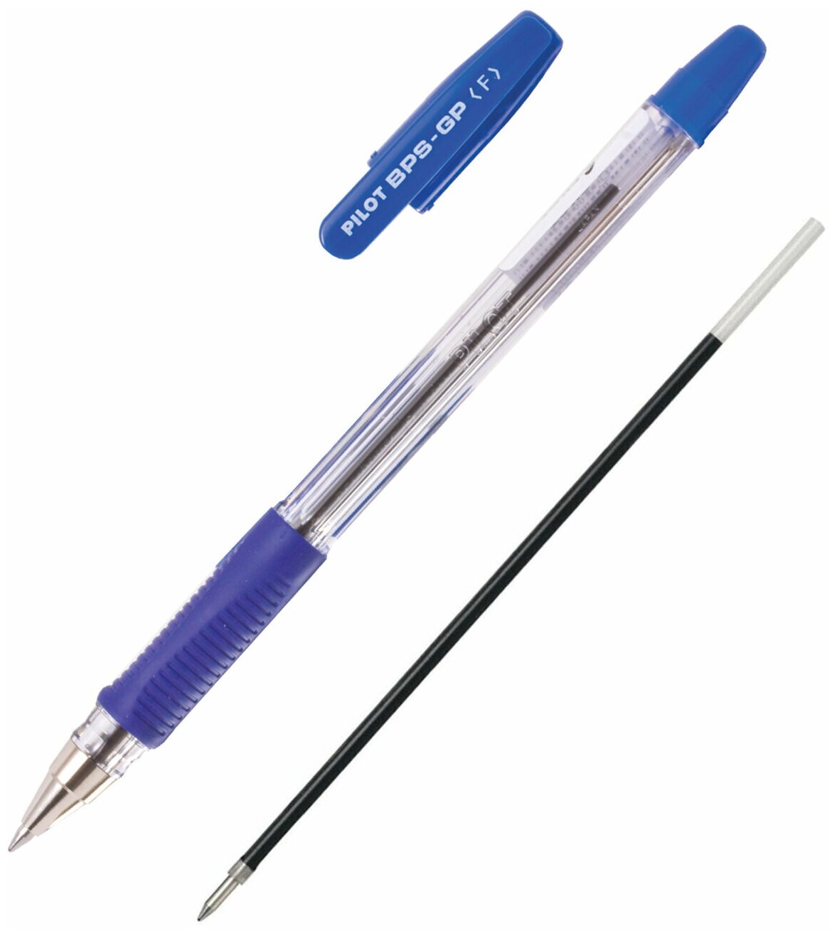 Ручка шариков. Pilot BPS-GP-F-L прозрачный d=0.22мм син. черн. сменный стержень 1стерж. стреловидный пиш. наконечник линия 0.22мм кругл. телескопич.корпус резин. манжета