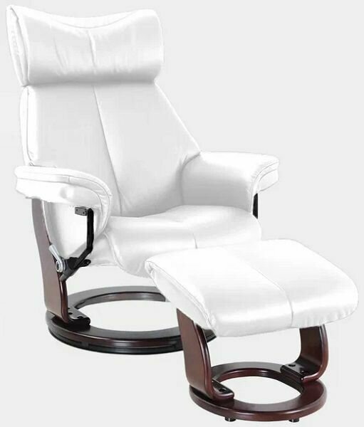 Механический реклайнер из натуральной кожи с пуфом для ног Falto Relax Hana 7753WB, цвет белый