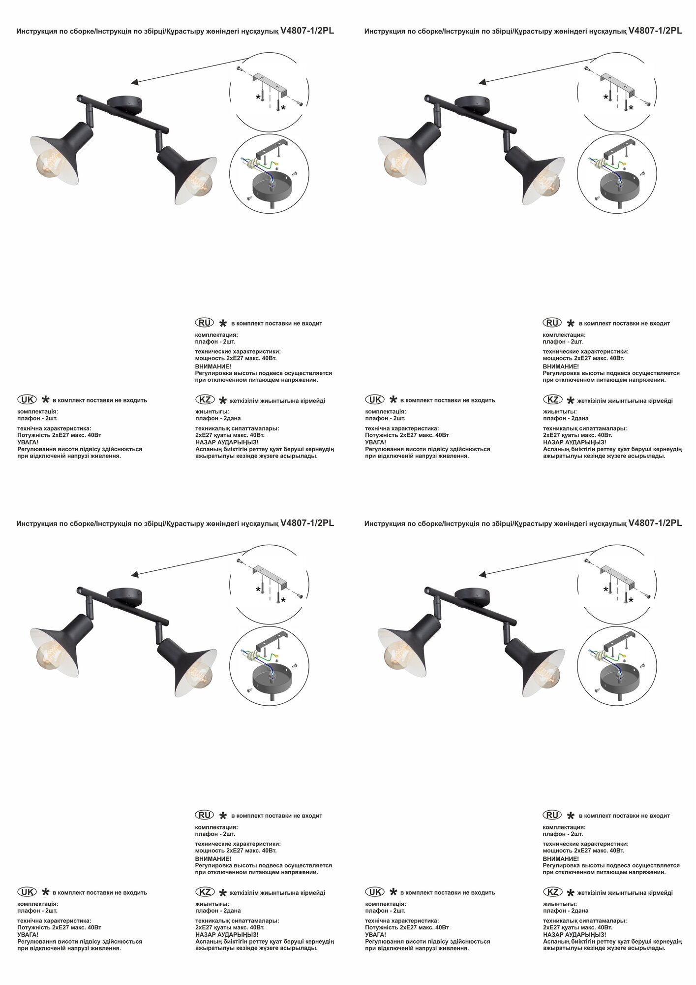 Люстра V4807-1/2PL, 2хЕ27 макс. 40Вт