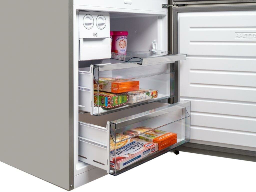 | Плюсы: | Лаконичный дизайн, функциональный, бесшумный. Удобный дисплей и панель управления. Есть режим быстрой (интенсивной) заморозки. |