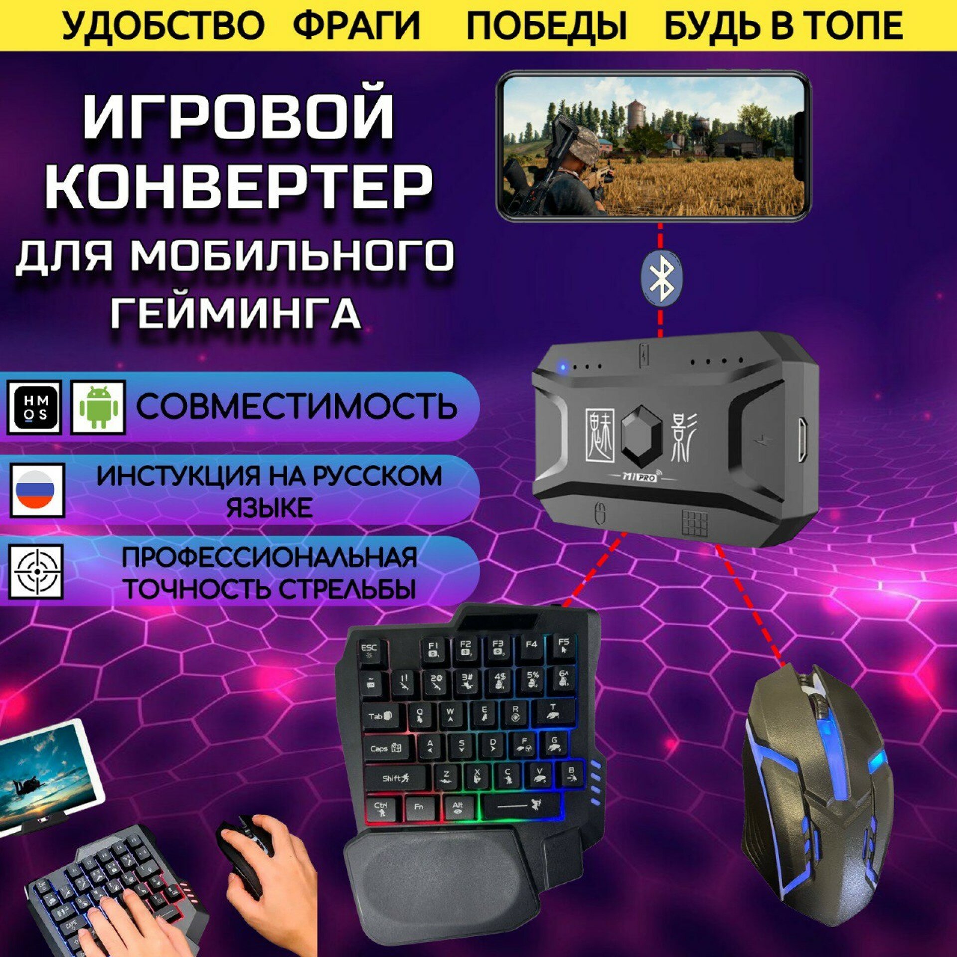 Купить Клавиатура Мышь Геймпад игровой контроллер PUBG CODM world of tanks M1 Pro Bluetooth Android + коврик и подставка